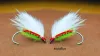 This is a very successful Pattern for a Competition Hook size 10 Thread Red 8/0 Body Lime Green Organza Ribbon Wing White Marabou Red Holo Cheeks