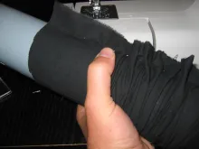 Apart from the rods you need some fabric. I used some heavy weight black Cordura type fabric that I already had. You want something that can take some wear and tear, but also something that gives a little. Not elastic as such, but with enough stretch to be able to slide on and off the tube after it has been sewn as you see in the pictures below.