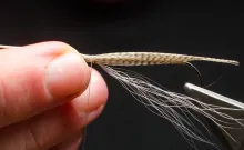 The original pattern calls for teal flank, but other barred feathers can be used, and I had lots of mallard and used that. Barred woodduck (without the b/w tips) or barred feathers from other ducks like pintail, widgeon or gadwall can also be used. Each has different hues and varying contrast in the barring, but are definitely an option as a replacement for the teal.