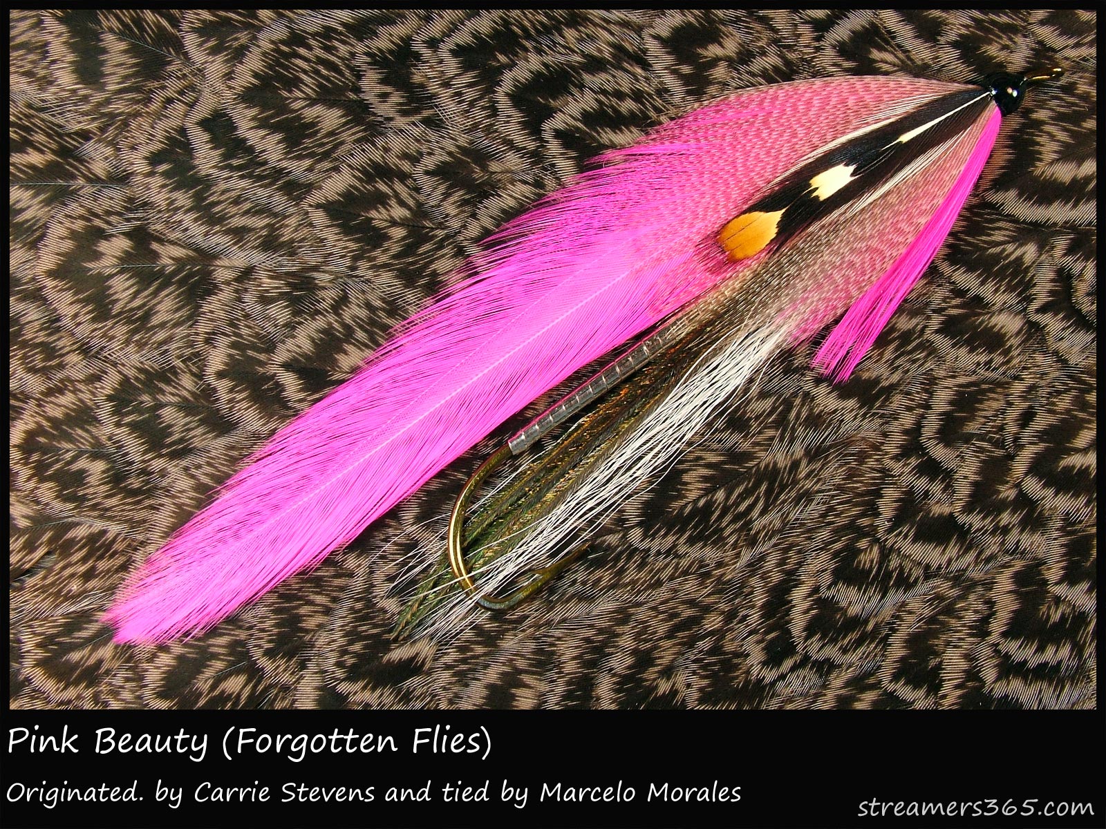 Pink Beauty - Marcelo Morales Tied by: Marcelo Morales Originated by: Carrie Stevens Source: Forgotten Flies, Schmookler & Sils (1999) Hook:...