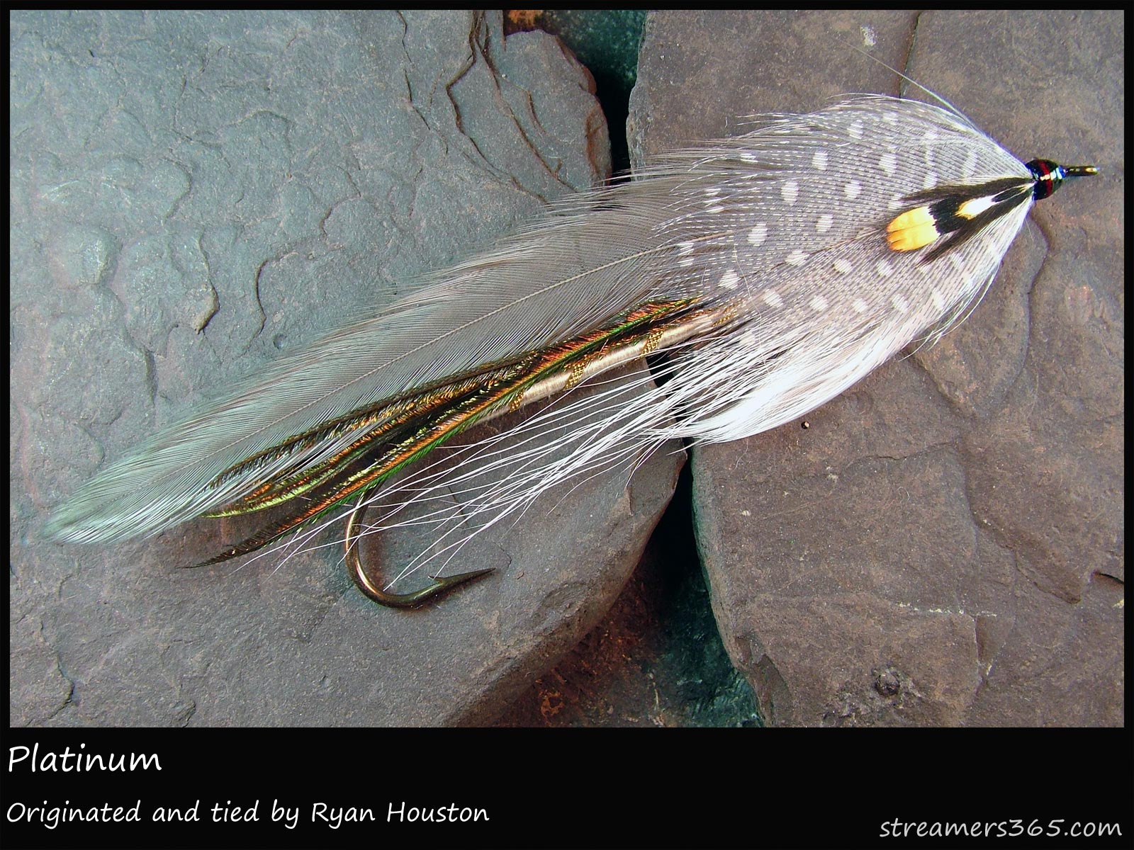- Platinum- Ryan Houston Tied by: Ryan Houston Originated by: Ryan Houston Hook: Gaelic Supreme Mike Martinek 8xl #1 Thread: White Body: Grey floss...