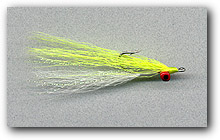 Tail: White bucktail with chartreuse Krystal Flash rolled into it. Tie the excess forward to the rear of the dumbbell eyes.