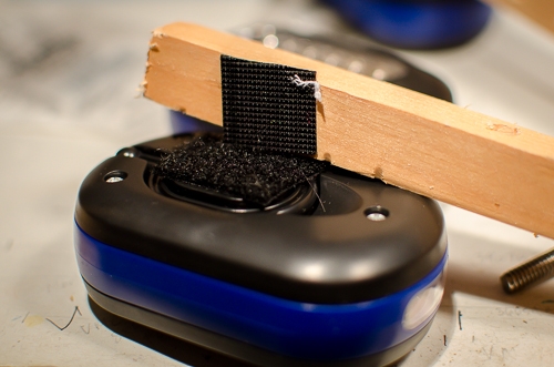 Oh yeah - some scrap lumber too. (Gotta love that temporary mid-February workbench). Six pieces of wood are needed in total - three for each stand. One piece for a base, one for the vertical column, and one more for the adjustable boom. Size them according to how you plan to hold the fly during photographs. I made mine so they could shine light down on a fly held in my vise.