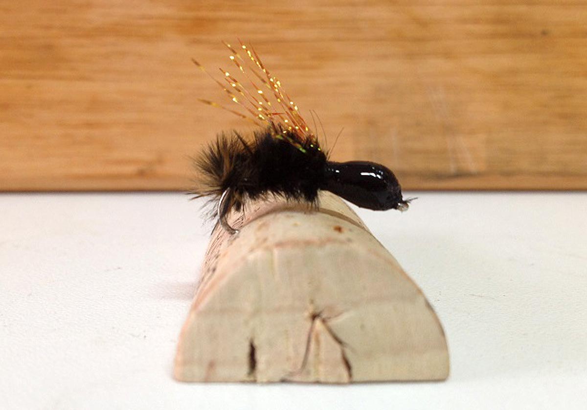 Complicated explanation of the name given, I've created this fly aiming for Tilapia. But it can in fact be used for Bluegill, Oscar, and even Carp or any less-aware trout. Or even any other fish that gets interested. This cute blackie is very teasing… at least to aquatic life.
