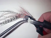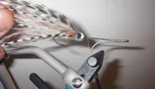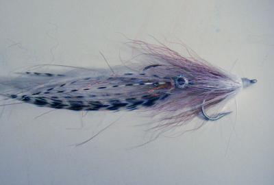 I developed this fly to "match the hatch" of the abundant Squid in the water and have found them highly productive from the Beach for Resident Coho and Sea run Cutthroat trout.