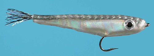 About a year ago a friend of Blane's dropped by the shop and in the course of the conversation he revealed to Blane what line of work he had gotten into. It just so happened that he was dealing in a number of products that might lend themselves well to what we were doing, and Blane latched on to some samples of material. The next day Blane called me and his excitement level was about as high as it could get. I drove down, took a look at what he had done and yes, it was definitely exciting. It was more than exciting. This opened up a whole new field of fly tying materials, all with foil coatings, and the procedure was so easy to do that it seemed too good to be true. The end result was the production of two new products, Siliskin and Locoskin, which we have been experimenting with for the past six months or so. These two new products have been incorporated into quite a few new terrestrial, salt water and warm water patterns. I'll have to admit though that with the advent of winter only a few of these patterns have been field-tested, but the ones that have been tested produced some spectacular results. For example, one of Blane's salt-water patterns proved to be incredibly successful last November on false albacore and aroused the admiration of such notables as Lefty Kreh and Bob Popovics. What more can I say? Who wouldn't be pleased with catching over 40 false albacore in a short period of time?
