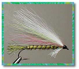 | WING | PINK BUCKTAIL, OVER WHICH IS SPARSEBLACK BUCKTAIL, OVER WHICH IS SPARSE CHARTREUSE BUCKTAIL, OVERWHICH IS ARCTIC FOX BODY HAIR, TOPPED WITH A SPARSE AMOUNT OFARCTIC FOX TAIL HAIR. |