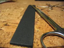 3. Tie in the narrow end of the strip. Use loose turns or a flat thread, otherwise the thread will cut through the foam.