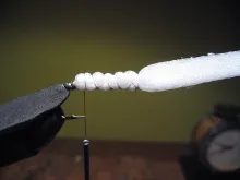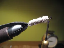 13. Tie in the bristles. It will be bug legs. Secure it with some Super Glue.
