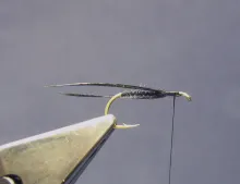5. Tie the hackle in, shiny side up.