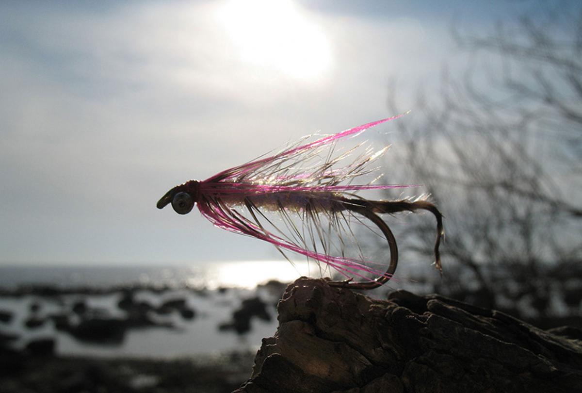 A Grey Frede is tied on to the tippet. Persson finalizes his leader with a Pink Glitter Shrimp and starts fishing a bit further down the coast.