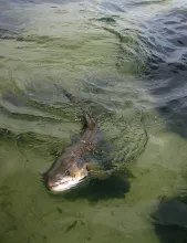 The kelt is typically slim, it's tail and fins are worn and the fish is deplete of energy from overcoming the hazards of the spawning run. Some are even attacked by different fungi and fin-rot. Many of them are barely recognizable as sea trout, but look like a different species.