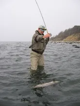 On the other hand, when it settles and the murkiness of the water reaches a certain low level, we celebrate, because it's a well-known fact that the boots-just-barely-visible state of the water will create close to perfect conditions for sea trout fishing. The fish will be hunting ferociously in the shelter of the dirt and aggressively attack most things that move—including our flies... hopefully.
