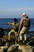 The surprisingly large number of sea trout on Bornholm is caused by several factors. The single most important one is the presence of many spawning streams. The small island has a couple of dozens of streams, where sea trout spawn, and that draws a lot of fish close to the shores during the winter. The strategy of these fish even enhances the chances of catching them on the coast. Because of the small size of the streams and the fact that they are all spate streams with very fickle and unstable water levels, the fish have to engage in a hit-and-run spawning strategy, entering the streams as soon as the water is there and exiting the stream again within a few days before the levels drop.