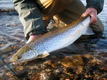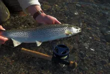 They are few and far between. We have a log of all fish caught by a dozen or so of anglers over a period of more than 10 years. It has very few Danish sea trout over 5 kilos or 10 lbs. on record – like 4 including Jens' fish out of about 1,400 bright sea trout and about 3,300 fish altogether. Coastal sea trout of this caliber are usually about 75 centimeters (29.5”) or more, so you can see that Jens' dream fish measuring 98 is in its own league.