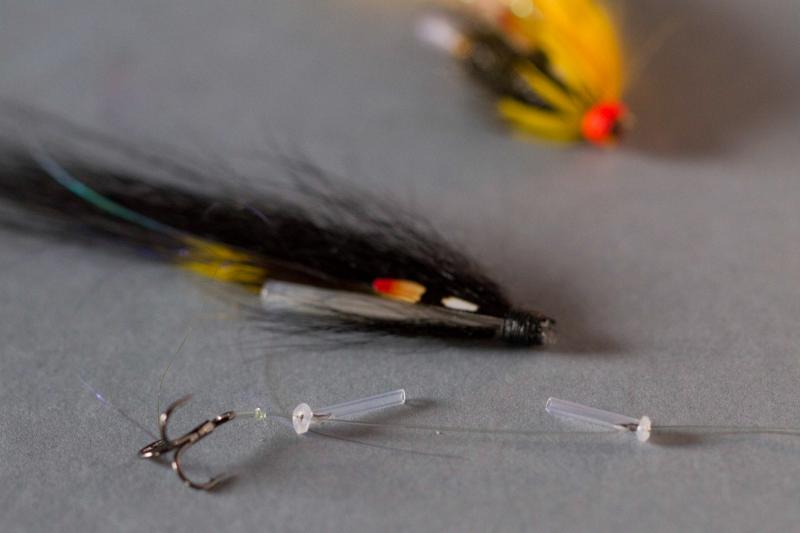 One of the advantages of a tube fly is that it can slide on the leader away from the fish so that teeth do not damage the dressing, thereby increasing the longevity of the fly. Should only one end slide using this system the fly will be lost.