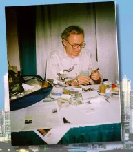 The public, (between 8 and 10,000) spied, and we tied, fiddling around with furs'n feathers, tinsels'n synthetics. Like painters with tubes of pigments and bolts of unstretched canvas, creating their little paintings on a small piece of steel, often smaller than a paperclip.