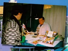 At all previous ISE shows I had worked as a demonstrating fly tyer, both for the public and in the so-called Video Theatre. This time it was different in the sense that the firm of Marc Petitjean had hired me to tie flies in Marcs booth. We both also did several one hour tying sessions in the Video Theatre. I'll let the pictures speak for themselves.