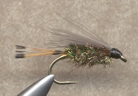 Note the use of a soft webby hen hackle for the wing in place of the more traditional pair of duck quill slips.