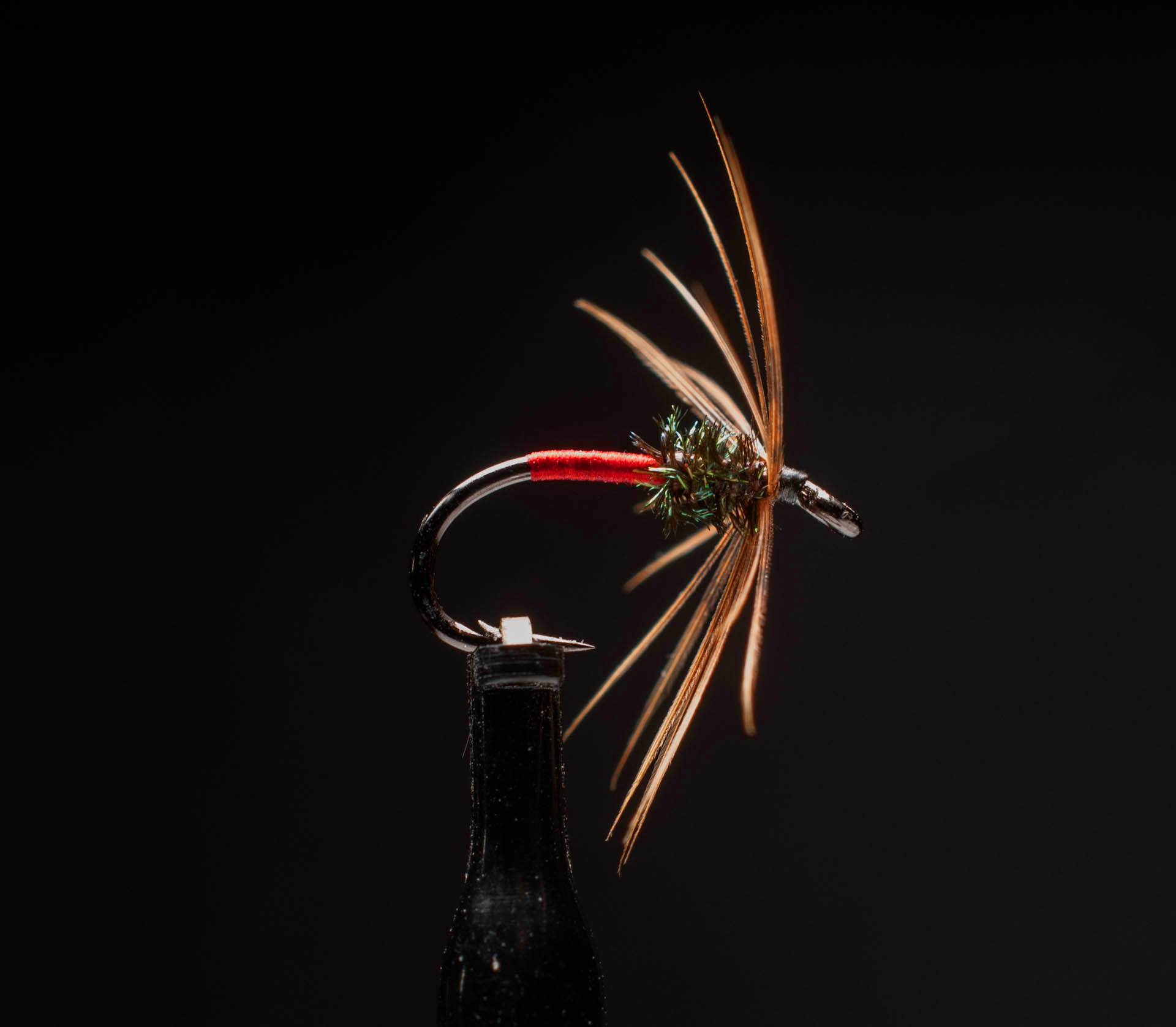 - Wrap it a couple of times to form a very delicate and sparse “umbrella-like” hackle. Less is more.