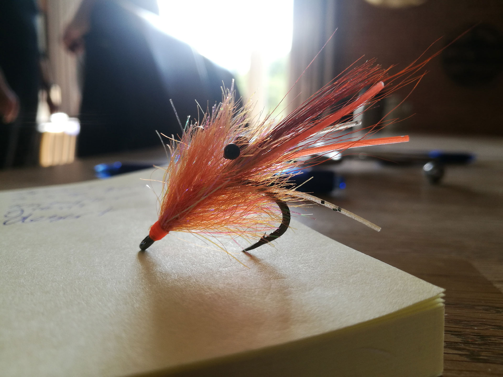 Tail (thorn/antennae) Small bunch of orange bucktail and a large, red golden pheasant shoulder feather