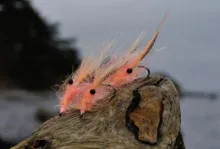 was tied by Danish fly angler and tyer Ove Monrad and incorporates a brass bead to give it some weight. We rarely see brass beads on coastal flies, but personally I find that flies with heavy beads and cones do very well on the coast, and the added weight in the front results in a very sexy, jigging motion in the water when the fly is retrieved in small strips. You find the same principle and motion in flies such as Raoul Kempkes's Perfect Woolly Bugger not to mention the renown Jiggy.