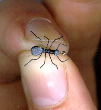 your ant pattern works great; caught a 28 inch rainbow in a california northern lake last year.I use .016 monofilament for the legs, and use a warm to hot needle over a candle to make a bend in the leg.I use a black marker pen to color the legs.Thanks for sharing your pattern.If you like I would send you my version of the ant. THANKS John