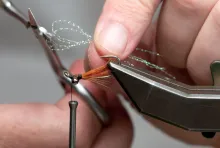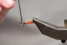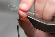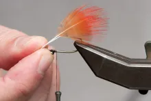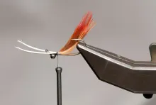 In some later variations of this pattern I have opted for the just as useful peacock herl, which in my eyes adds to almost any saltwater fly and is a natural choice for this type of fly. I simply pluck a couple of herls in bits to get the right length of wing.