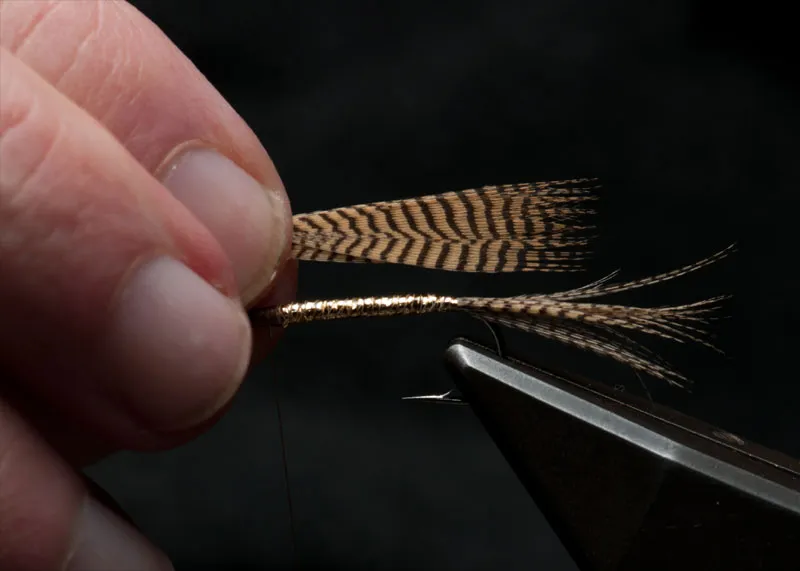 Clip the rest of the long barbs off the mallard feather and combine with the tip