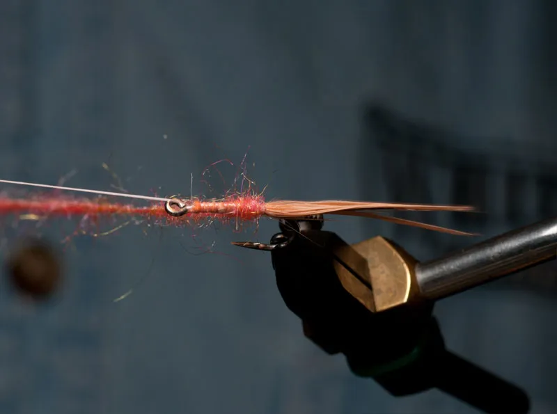 Start wrapping the dubbing to form the rear 2/3 of the body. A rotating vice makes this job much easier.
