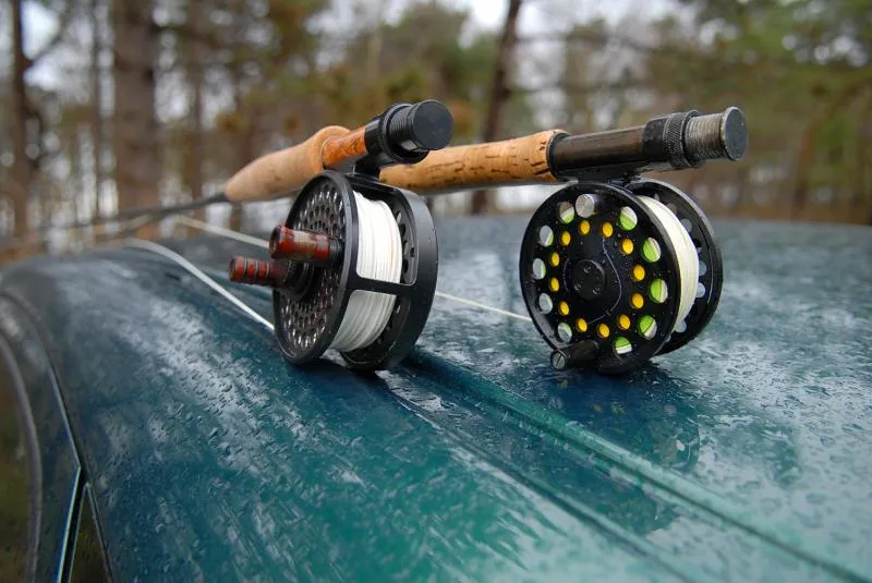 Rain, forest, reels, rods. Who doesn't want to go fishing when looking at this?