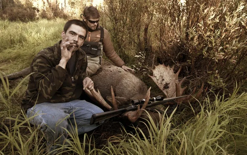 Local Dean celebrates a succesful moose hunt with a cigarette and a bit of swearing
