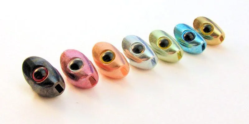 The Flymen Fish Skulls are made for hooks, but the broad slit allows for the head to be pressed onto the thin inner tube of a tube fly.