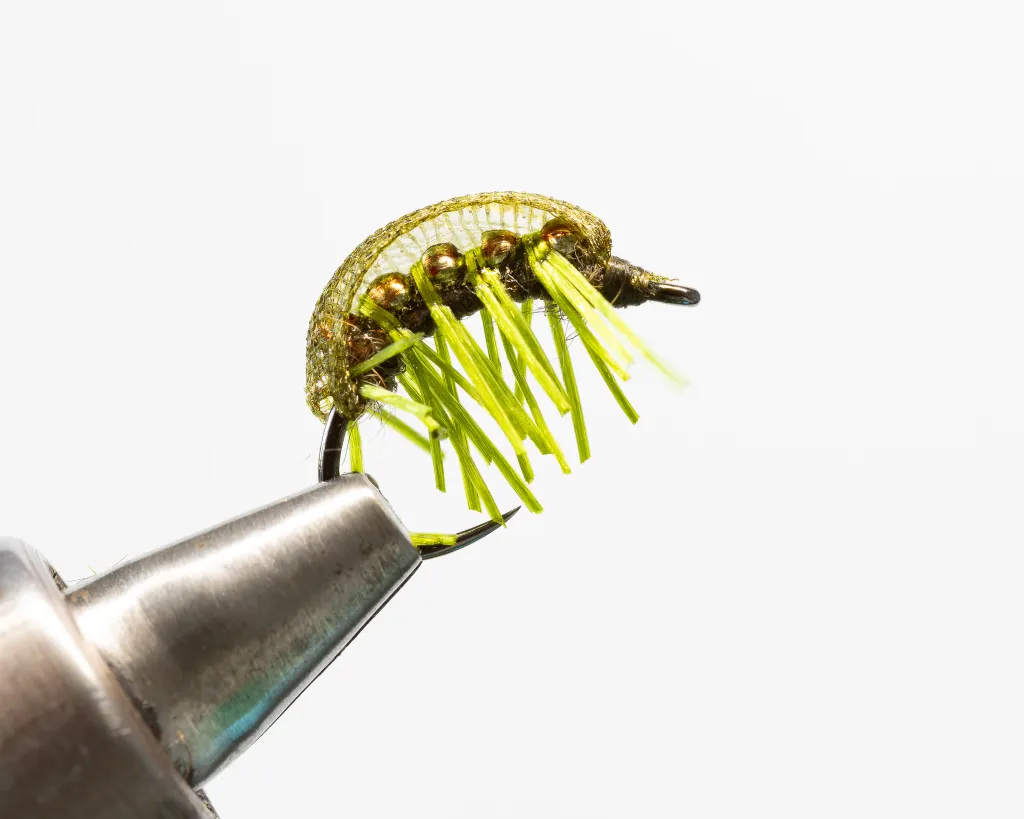 Fold the organza over the body, tie in and remove the waste end. Whip finish and remove the thread. Colour the head with an olive marker pen.