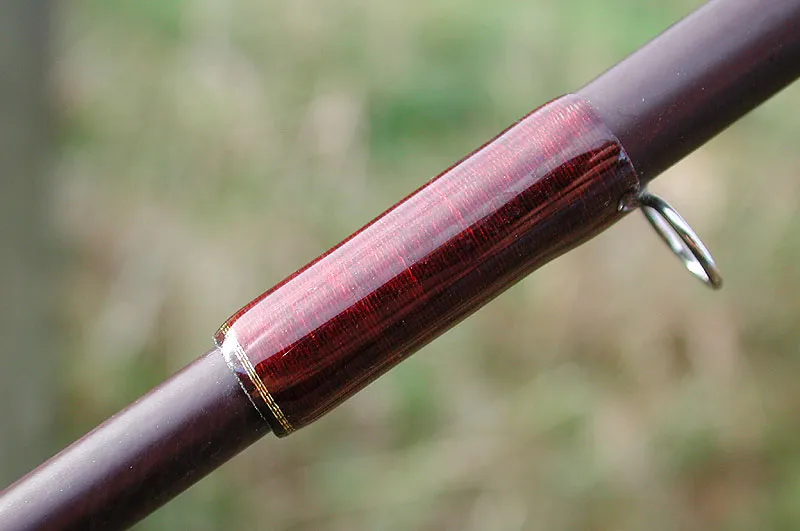 The single leg snakes and female ferrules are wrapped with neat thread wraps and well-executed gold trim wraps. The epoxy works is on a par with any brand rod out there.
