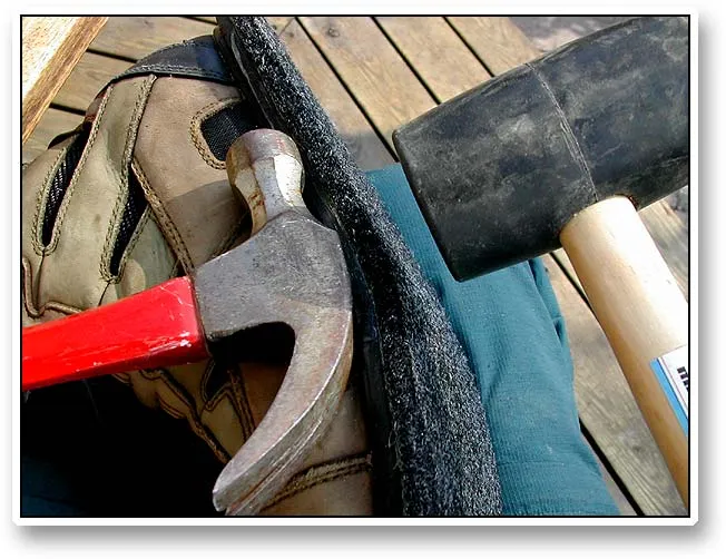 In order to get the glue to bind you have to hammer the boot and sole together. Do not omit this step, which adds strength to the assembly. A plain hammer or another massively heavy object and a rubber mallet are suitable tools for this step.