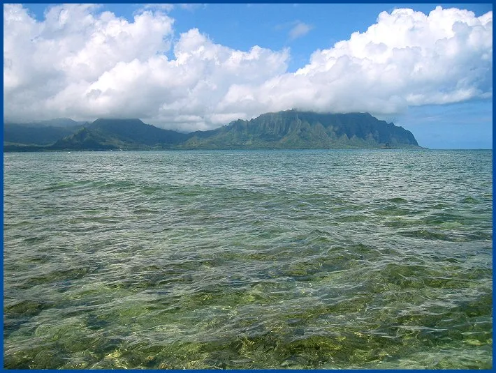 Typical Hawaiian flats have lots and lots of live coral heads mixed with grasses and seaweeds, which bones absolutely love. Even more beautiful are the landscapes surrounding.