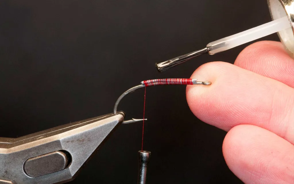 Once the wire is in position, a layer of varnish may help keep it from shifting -.both when tying the fly and when fishing.