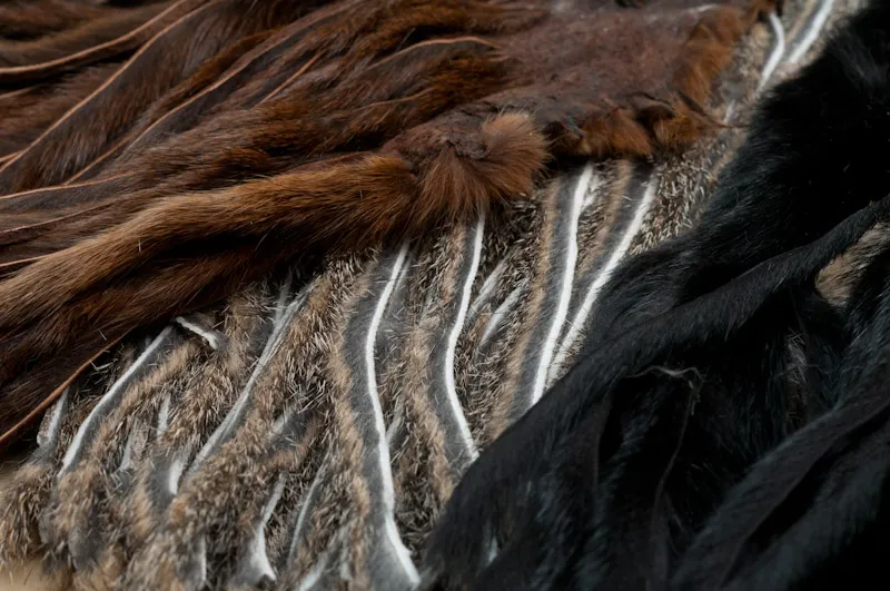 I like squirrel skins for zonkers due to their hair length and high hair density. The center skin in natural, two two flanking it are dyed