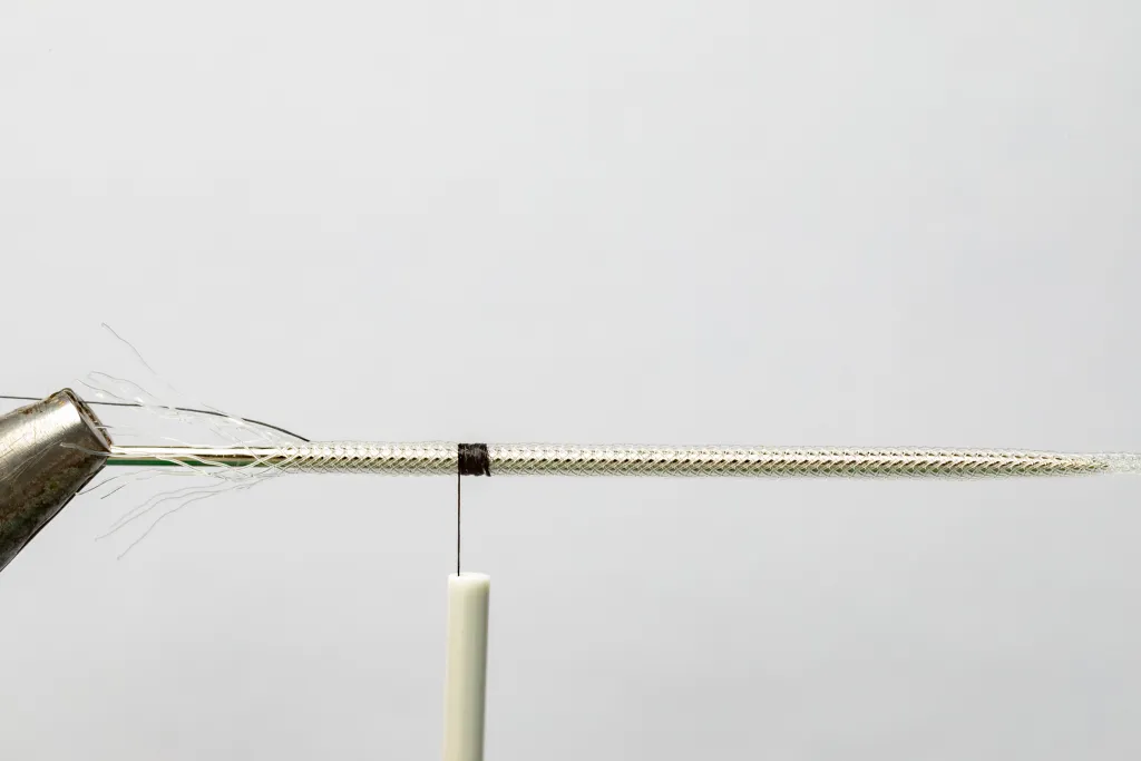 Starting the thread on the braid, which has been slid onto the needle.