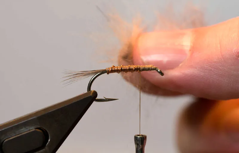 Prepare some dubbing. This is rabbit, but most fine hair or synthetics will do fine.