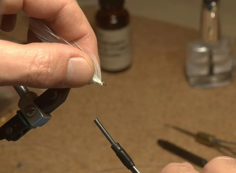 Catch the small triangular stub with the tying thread and secure with 2-3 wraps