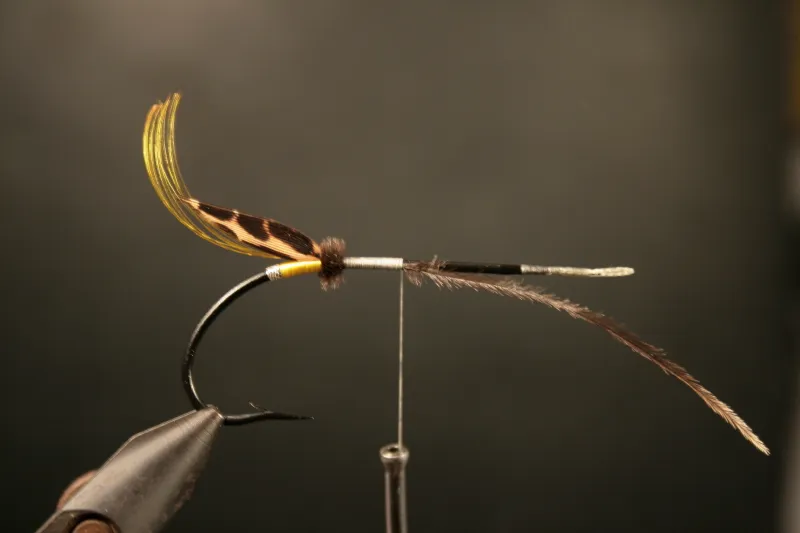 Wrap the Ostrich and secure it with 3 wraps. Then continue wraps closely forward. Don't cut the end yet.