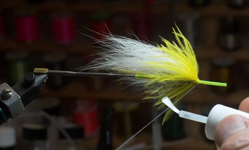 Trim the feather, secure it with thread and varnish. Notice that the hackle ends in the thin inner tube