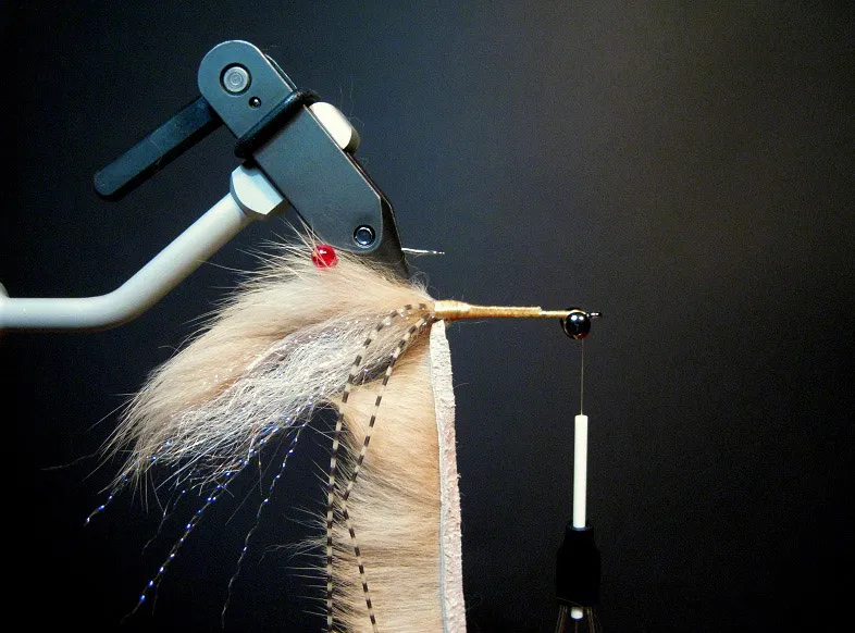 Tie in the last zonker strip over the eyes and start wrapping in close turns towards the hook eye.