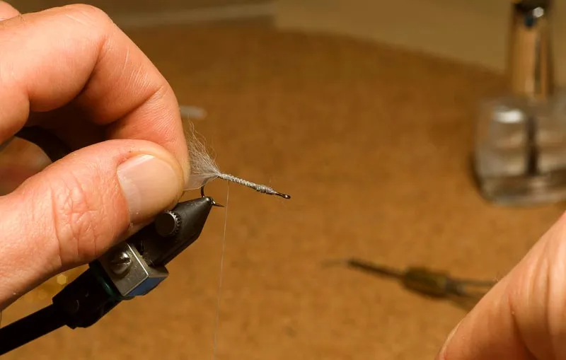 Tie the plastic strip in in the rear of the fly, starting with the taper you just cut