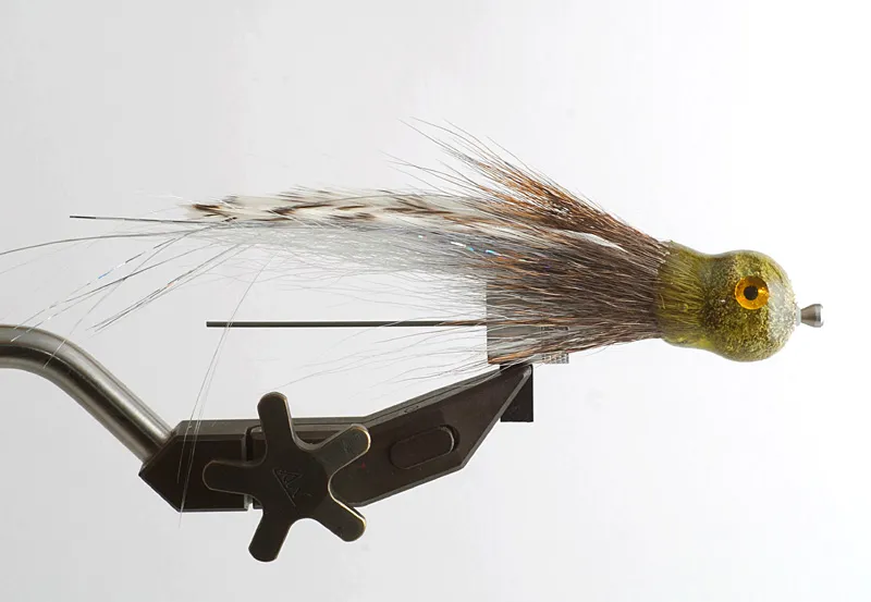 This pike fly is a muddler tied on a tube and coated with a generous layer of epoxy over the head and wing base.
