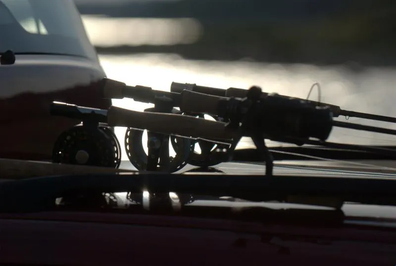 Hard backlight provides a great setting for this gear-on-car-roof image
