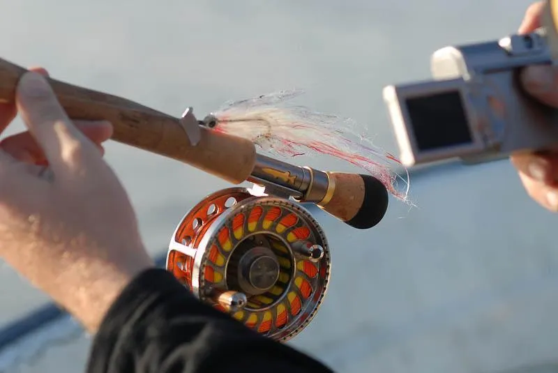 I can't remember the construction, but it seems fairly simple. The only really special thing is the huge propeller that Nils uses in front of the fly. You can see a closer image of the fly here. It seems like a fairly plain hair and synthetics fly with soime red in it and some large eyes...