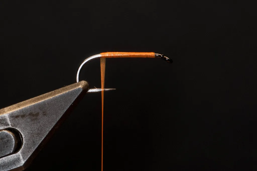 A flat and tight thread base can be a good foundation for adding further materials such as dubbing. Notice how flat and wide the thread is at the place where it leaves the hook shank.